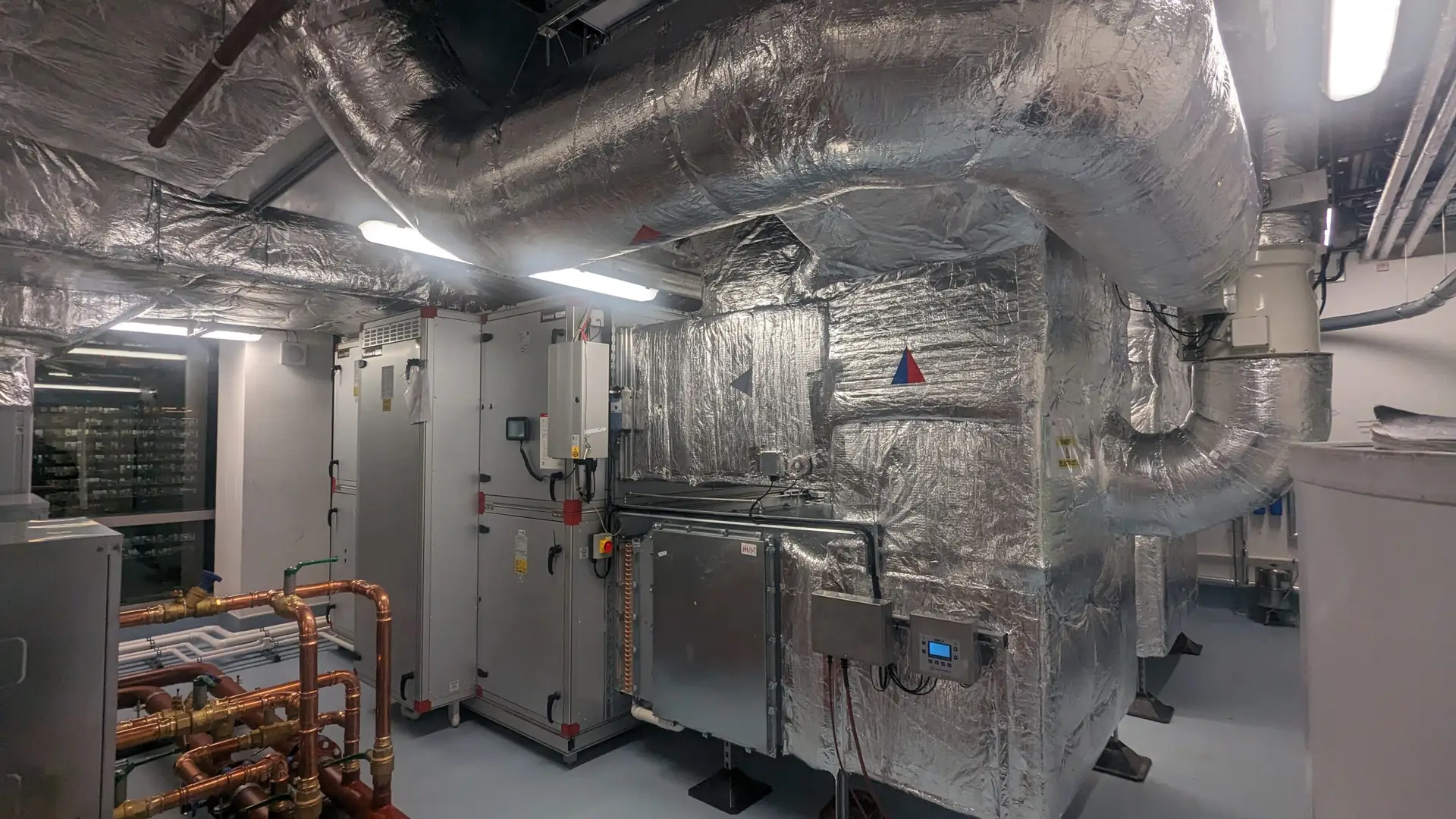 Due to the nature of the clinical spaces, the building’s existing ventilation systems couldn’t be used. Dedicated ventilation systems with HEPA filtration and defined pressure controls were installed on both floors: